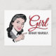 Cartão Postal Apontando uma mulher com SMS Garota, se comporte