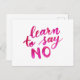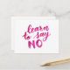 Aprenda a não dizer nenhuma citação inspiradora. Citação inspiracional rosa escrita à mão em cartões postais.