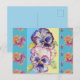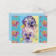 Cartão postal aqua floral de pensamento colorido e
