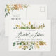 Cartão Postal Aquarela botânica verde dourado chá de noiva