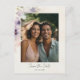Anuncie seu dia especial com estas flores encantadoras do cosmos de aquarela, que salvam os cartões postais. Apresentando delicadas matizes azuis e cor-de-rosa, as flores do cosmos fornecem um cenário sonhador para sua foto personalizada do casal. Este cartão postal é uma maneira encantadora de compartilhar sua história de amor com amigos e familiares, dando o tom para sua celebração romântica.