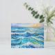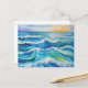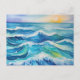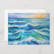Cartão Postal Aquarela das ondas do mar sob o sol