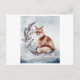 Cartão Postal Aquarela de uma Raposa com uma flor