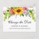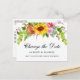 Moderno Elegante Aquarela Floral de Girassol A data do adiamento do casamento O cartão postal contém girassóis, rosas cor-de-rosa e verde