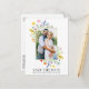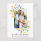 Modern Watercolor Anúncio de Noivado de Casamento de Flores Selvagem Salva o Cartão-postal inclui delicadamente amarelo, rosa, pêssego, azul poeirento, verde-sábio, roxo, vermelho e laranja, espumas, folhas de eucalipto e outras lindas culturas botânicas numa armação de ouro. Foto do casal.