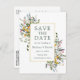 Modern Watercolor Anúncio do Noivado de Casamento de Flores Selvagem Salva o Cartão-Postal inclui flores silvestres amarelas, cor-de-rosa, roxas, poeirentas, azuis e brancas, folhas de eucalipto, folhas verdes de sábado e outras culturas botânicas numa armação de ouro. Sage Green Text.