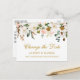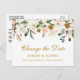 Magnolia Floral Moderna Elegante Alteração Floral Data Cartaz de Adiamento de Casamento Apresenta magnólias brancas, rosas rosa, folhas de eucalipto, algodão e verde