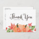 Envie obrigados com este obrigado personalizável que você faz o cartão-postal. Apresenta abóboras laranja-aquarela, e folhas de maple com caligrafia rústica. Personalize adicionando seus detalhes. Este obrigado de abóbora que você faz cartão postal é perfeito para casamentos outono, aniversários, chás de fraldas e chás de panela.