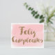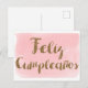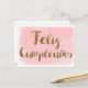 Cartão Postal Aquarela Rosa Feliz Cumpleanos Brilho Dourado
