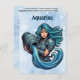 A fun horoscope Aquarius postcard with graphics have a beautiful woman carrying a container of water as Aquarius represents the water bearer. On the back is Aquarius dates, traits and energy.
