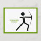 Arqueiro com seu arco cartão postal horizontal preto e verde de arqueria que mostra um ícone minimalista de uma silhueta preta de um arqueiro e seu texto sobre fundo branco com borda verde. Personalize-o e altere o texto com monograma, nome ou mensagem.