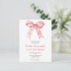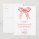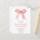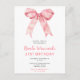 Convite de cartão postal de festa de aniversário bonito com uma fita de arco de coqueteleira rosa. As palavras podem ser alteradas para atender aos seus próprios detalhes ou requisitos