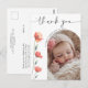 Expresse gratidão àqueles que tornaram o chá de bebê da sua criança verdadeiramente especial com nosso cartão de agradecimento lindamente desenhado. Este cartão elegante apresenta um fundo branco atemporal, preparando o cenário para a foto do seu bebê enquadrada em um delicado arco de aquarela adornado com flores vermelhas vibrantes. No topo do arco, um "Obrigado" sincero é escrito em uma fonte moderna sofisticada, adicionando um toque de calor e charme pessoal. Abaixo da foto, o nome do seu bebê é exibido em letras refinadas e elegantes. Pressione o botão para personalizar o cartão, você ficará encantado!