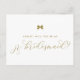 Bonito cartão de proposta da dama de honra júnior. Peça à família e aos amigos que façam parte do seu casamento com este cartão personalizado "Você será minha dama de honra". Ele apresenta um arco de ouro e um roteiro elegante. Personalize adicionando um nome e uma mensagem.
