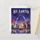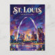 O Gateway Arch é uma maravilha de precisão matemática e beleza de aço inoxidável, enquadrando a silhueta de St. Louis como um portal prateado gigante. À noite, sua superfície reflexiva capta as cores do rio Mississippi e as luzes da cidade atrás dele.
