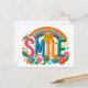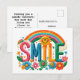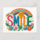 Brilhar o dia de alguém com este belo cartão postal Get Good Soon! Apresentando um animado design com flores coloridas, um arco-íris, e a palavra "Sorria", traz calor e positividade. O verso inclui uma mensagem e um espaço incríveis para o endereço do destinatário.