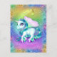 Este cartão postal colorido apresenta um unicórnio mágico e cintilante com cauda aqua brilhante e crina combinando, olhos roxos e cascos e asas cor-de-rosa. Ela está posando em frente a uma lua crescente colorida com as cores do arco-íris e está cercada por cores de arco-íris e faíscas. Obrigado por olhar! 🦄