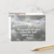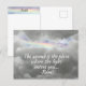 "O ferimento é o lugar por onde a luz entra em você", as provocativas palavras poéticas de Rumi, um poeta persa do século XIII, são destacadas contra um céu cinza tempestuoso neste cartão postal fotográfico naturalmente lindo. Um arco-íris promissor brilha através de uma abertura nas nuvens cinzas como uma promessa celestial. Envie um pouco de encorajamento, inspiração e motivação com este cartão postal inspirador. Personalize com um nome ou seu próprio texto no verso contra o belo arco-íris. Esta é uma fotografia original da natureza por JLW_PHOTOGRAPHY.