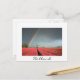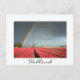 Cartão-postal de um arco-íris colorido num céu escuro sobre um moinho de vento e um cheio de campo de tulipas vermelhas brilhantes durante uma tempestade primavera num cenário perto de Amesterdã, nos Países Baixos, com uma fronteira branca, e o texto: "Holanda".