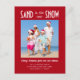 Espalhe as palavras da sua mudança para a praia com estes cartões de anúncio personalizados de fotografia a tirar os olhos. Substitua facilmente a foto da amostra por uma foto favorita de sua própria família. As palavras "Areia é a nova Neve" aparecem na tipografia retrógrada branca sobre fundo vermelho. Adicione sua mensagem de feriado no script e seu nome e novo endereço na fonte sans serif.