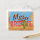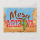 Arte de Arizona de neo viagens vintage de Mesa em desenho retro com estilo deserto, cacto e rocha vermelha.