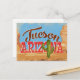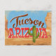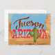 Tucson Arizona neo viagens vintage na parede de poster em desenho retro com o deserto, cacto e rocha vermelha.