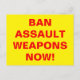 Proibir Armas De Assalto Agora! Mostre seu apoio ao controle de armas de senso comum para evitar tiroteios na escola e outras formas de violência com este cartão postal ousado, altamente visível, sem disparates, enviando-o para seus representantes de governos. Você pode personalizar e alterar facilmente a cor, o tamanho, o texto e o estilo da fonte do texto com o modelo de personalização do Zazzle.