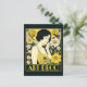 Celebrar o Dia do Deco de Arte com um design de Deco de Arte com uma mulher cercada por flores amarelas e creme.