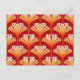 Cartão-postal numa reprodução de uma lírio estilizada, Art Deco, padrão de papel de parede - um gradiente de laranja-chama profundo a branco, acentuado com ouro-mostarda, sobre um fundo laranja-tangerina profundo