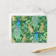 Cartão Postal Art Nouveau Peacock Impressão, Cobalt Azul e Verde
