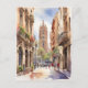 Cartão Postal Arte aquarela de Barcelona