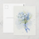 Cartão Postal Arte aquosa de buquê de flor azul
