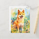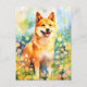 Cartão Postal Arte colorida em aquarela de Shiba Inu