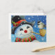 Cartão Postal Arte de Aquarela de Inverno Snowman e Chickadee