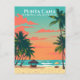Volte no tempo para a era de ouro das férias de praia com este cartão postal vintage de Punta Cana. Esta ilustração retrô captura um momento costeiro encantador com guarda-sóis vibrantes, palmeiras e ondas turquesa. Perfeito para quem ama arte de viagem nostálgica e vibrações caribenhas