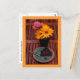 Este cartão-postal apresenta uma tarte assada e fresca feita com mirtilos picados! Um vaso de zinnias cor-de-rosa e laranja e Susanos ouros de olhos negros decora as latas da mesa do convés que ainda está molhado de uma tempestade matinal.