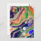 Cartão Postal Arte Fluida de Pintura Azul, Coral e Verde