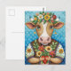 Cartão Postal Arte popular de aniversário com vaca de coração