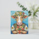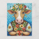 Cartão Postal Arte popular de aniversário com vaca do coração