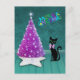Cartão Postal Árvore Atômica de Natal Prata Rosa Gato Preto Verd