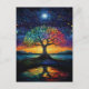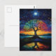 Cartão Postal Árvore Caprichosa da Vida Abstrata Arco-Íris Azul