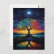 Cartão Postal Árvore Caprichosa da Vida Abstrato Arco-Íris Azul