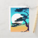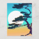 Cartão-postal em uma silhueta de inspiração japonesa de uma ciprestes, moldando uma lua de cheio contra um aqua e um céu laranja coral