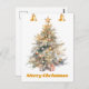 Cartão Postal Árvore de Natal de Aquarela com sinos de jingle,