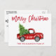 Manuscrito em Pincel Vintage Red Truck com Árvore de Natal - Cartão-postal Feliz de Natal