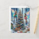 Arte de conto de fadas representando duas fadas e dois elfos decorando uma árvore de Natal caprichosa na floresta mágica em forma de arte ai aquarela.