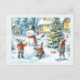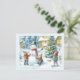 Cartão Postal Árvore de Natal e Férias do Boneco de Neve