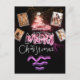 Árvore holográfica rosa e dourada com glitter e estrelas personalizada com 4 fotos para cartão postal de Natal.