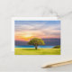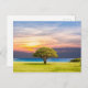Linda paisagem neste cartão postal. Uma árvore central, contra um céu colorido, e erva vibrante.