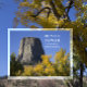 A Torre dos Demônios, também conhecida como Bear Lodge Butte, sobe mais de 1.200 pés cercada por folhagem de outono sob um céu azul claro no Monumento Nacional da Torre dos Demônios nas Colinas Negras do nordeste do Wyoming.